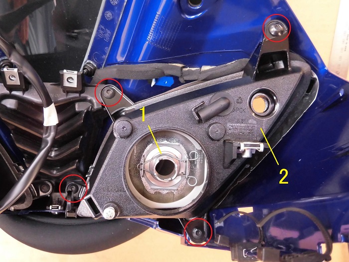 This guide explains how to remove and reinstall the headlight unit from the front cowl—specifically for the right-side headlight.