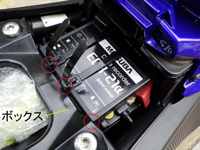 サイドカウルの下側に設置されていることが、分かるかと思います。